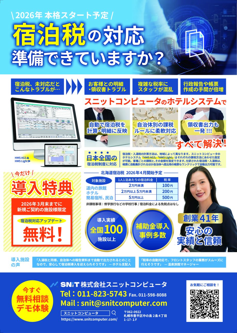 宿泊税対応アップデート無料!